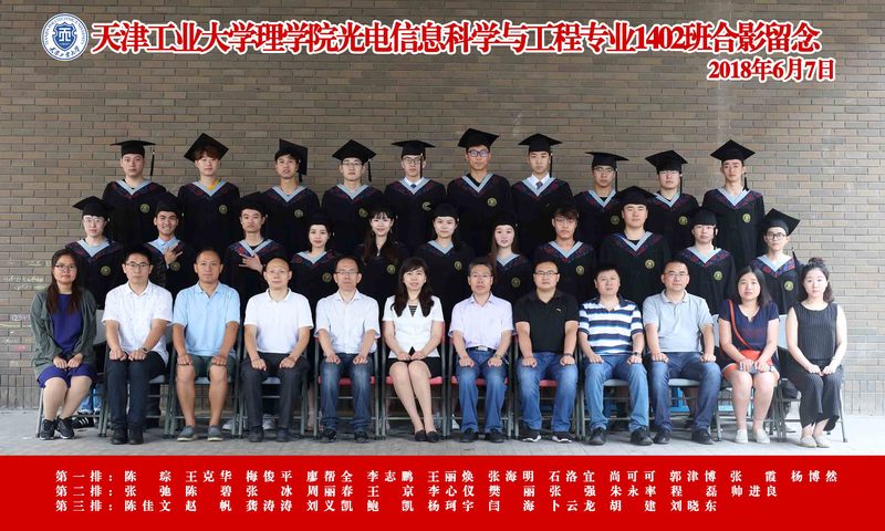 天津工业大学物理科学与技术学光信1402班毕业合影