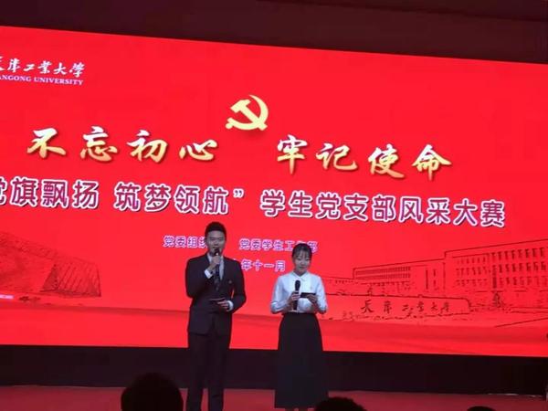 2019年11月12日,天津工业大学“党旗飘扬,筑梦领航”学生党支部风采大赛于艺缘隆重举行。