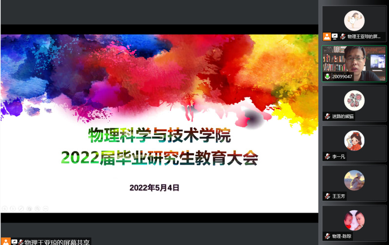 为进一步加强毕业生离校教育和毕业生党员的党性教育,2022年5月4日下午,博彩电子游戏推荐 通过腾讯会议召开了2022届毕业研究生教育大会暨毕业研究生主题党课教育活动。博彩电子游戏 班子全体成员、导师代表、办公室、科研办、学生办工作人员以及2022届全体毕业研究生参加了此次大会。会议由博彩电子游戏 党委副书记贾彦军主持。
