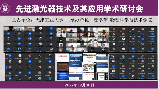 为促进先进激光器技术及其应用科学技术的发展,为激光器、激光器应用相关领域研究人员搭建交流平台,2022年12月10日,由天津工业大学主办,理学部博彩电子游戏推荐 承办的“先进激光器技术及其应用学术研讨会”通过线上会议方式成功召开。来自南开大学、厦门大学、哈尔滨工程大学、河北工业大学、暨南大学、天津科技大学、中国民航大学、中科智能制造(天津)有限公司、中国科博彩电子游戏 新疆理化技术研究所、天津工业大学等多所高校、研究机构的近200名专家学者参加了此次会议。