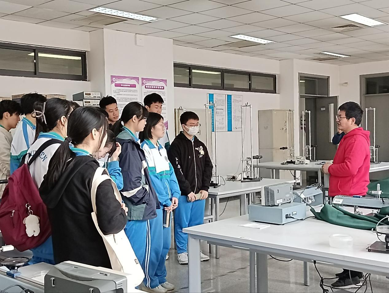 同学们积极与老师互动,现场气氛轻松活跃又充满学术气息。老师们渊博的知识拓宽了学生的视野,热情的讲解感染了研学团的学生,激发了学生对物理学科的兴趣,感受了大学的学术气息和文化氛围。