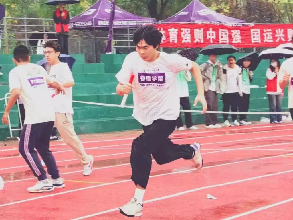 疾如闪电,快似乘风。物理师生迎着蒙蒙细雨奋勇前行,带起的点点水花见证了他们在速度和耐力方面的突破。他们是赛道上的勇者,风在耳边呼啸,那是为他们奏响的赞歌。
